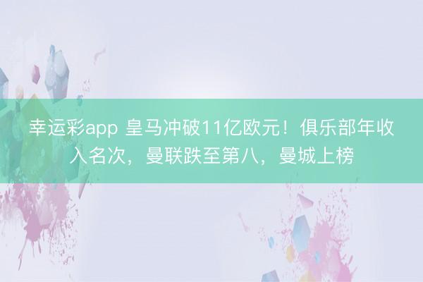 幸运彩app 皇马冲破11亿欧元!俱乐部年收入名次,曼联跌至第八,曼城上榜