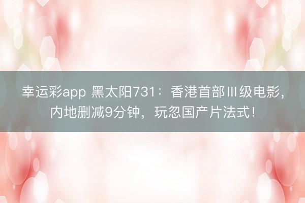 幸运彩app 黑太阳731:香港首部Ⅲ级电影,内地删减9分钟,玩忽国产片法式!