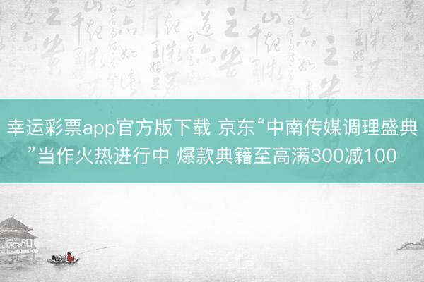 幸运彩票app官方版下载 京东“中南传媒调理盛典”当作火热进行中 爆款典籍至高满300减100