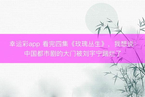 幸运彩app 看完四集《玫瑰丛生》,我想说:中国都市剧的大门被刘宇宁踹烂了