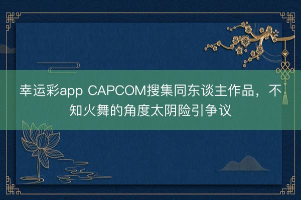 幸运彩app CAPCOM搜集同东谈主作品,不知火舞的角度太阴险引争议