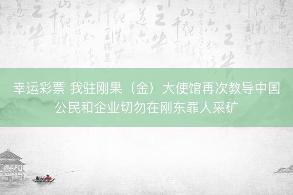 幸运彩票 我驻刚果(金)大使馆再次教导中国公民和企业切勿在刚东罪人采矿
